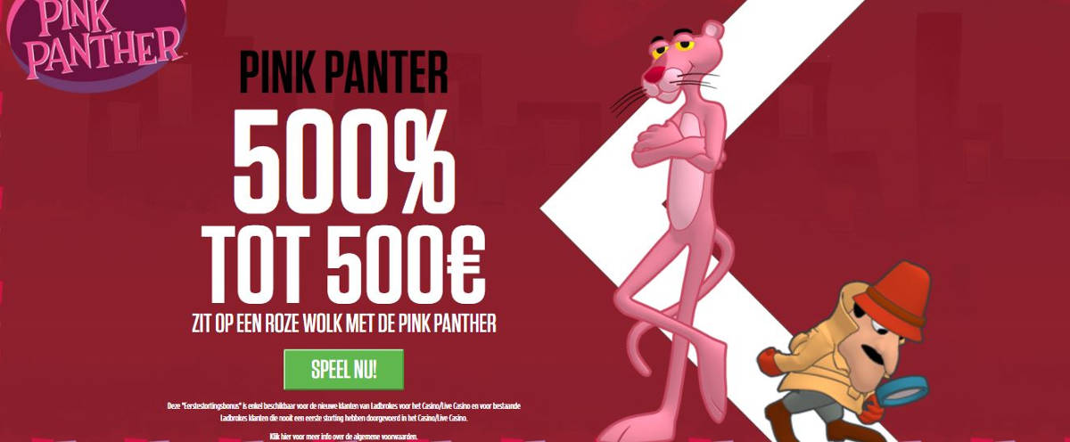 Ben je op zoek naar een nieuw online slot? Hou je in het bijzonder van de slots van de spelontwikkelaar Playtech? Hopelijk ben je dan al lid van het online casino Ladbrokes, want ze stellen daar een nieuw slot voor, Pink Panther. En als je nog geen lid bent, heb je geluk, want de nieuwe leden krijgen tot 15 mei een welkomstbonus van 500%.