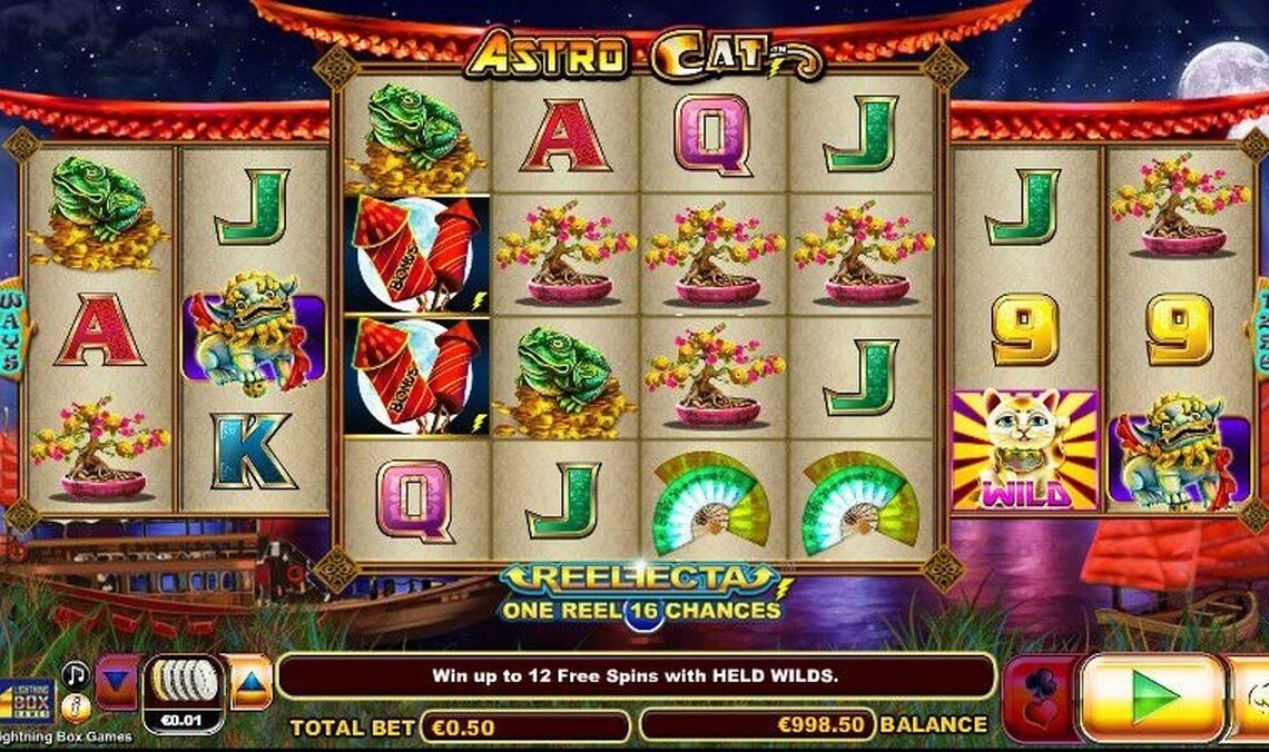 Astro Cat is een videoslot ontwikkeld door Lightning Box en heeft een Aziatisch thema met levendige kleuren en symbolen. Het spel bevat geen traditionele lijnen maar biedt 1296 manieren om te winnen dankzij de innovatieve Reelfecta reel. De achtergrond van de slot toont een serene rivier en een tempeldak onder een heldere nachtelijke hemel, wat zorgt voor een betoverende sfeer.