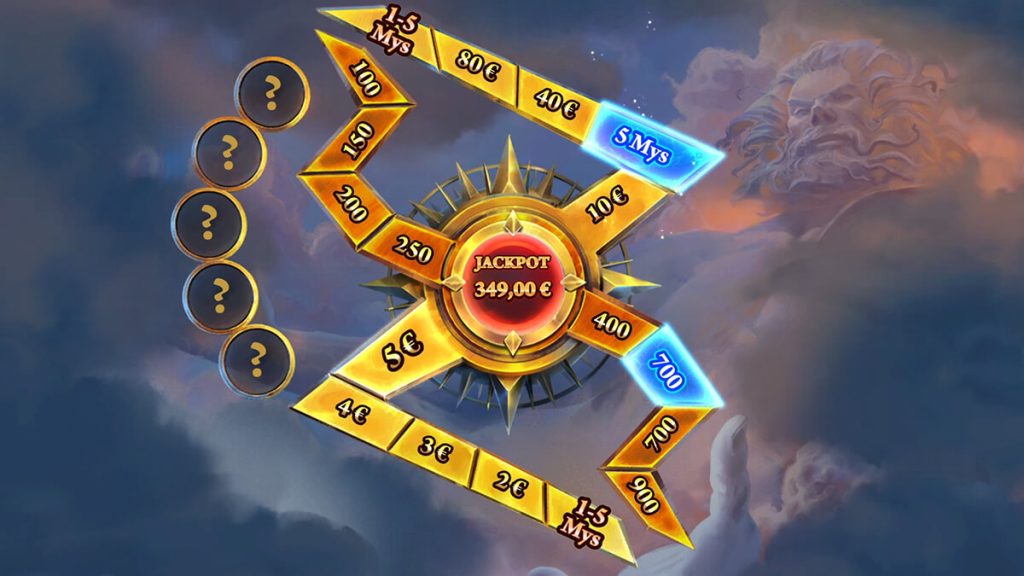 De indrukwekkende Zeus Arena-bonusronde is toegankelijk via de God Strike-functie of door drie rode woots op een winlijn te plaatsen. In de Zeus Arena worden prijzen gepresenteerd, waarna je kunt kiezen om de prijs te accepteren of het opnieuw te proberen. Je hebt vijf pogingen! De topprijzen bestaan uit 15 mysterie-spellen of de felbegeerde Zeus-jackpot.